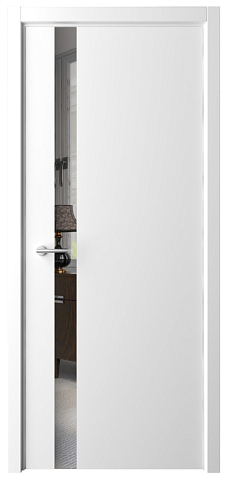 Дверь Геометрия-5 ширина 90 см Белый Эмаль Зеркало грей кромка В цвет полотна в Севастополе