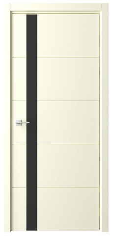 Дверь Геометрия-7 ширина 80 см Слоновая кость Эмаль Стекло черное кромка В цвет полотна в Севастополе