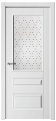 Дверь Классика-3 ширина 90 см Белый Эмаль Стекло мателюкс "Лорд матовое" кромка В цвет полотна в Севастополе